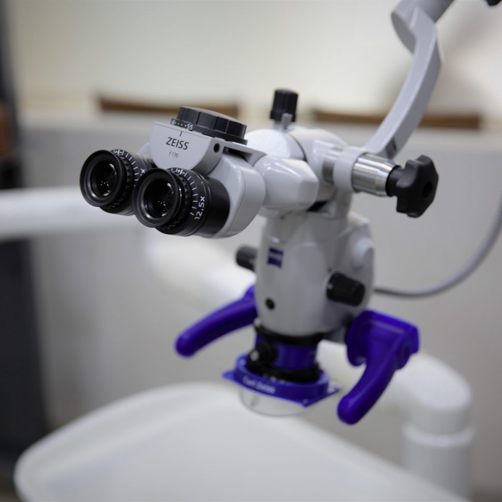 Microscope allows the endodontist to see the inside of a tooth and the root canal system at a magnification of up to 20 times. It enables endodontist to find the tiny canal entry points and branches because teeth often have extra roots or canals that cannot be seen with the naked eye or loupes (glasses with magnification). Sometimes, teeth can have fractures, cracks or other abnormal anatomy. With microscope, these can be detected and treated early. From research, microscope increases success rate of root canal treatment by more than 90 percent.
